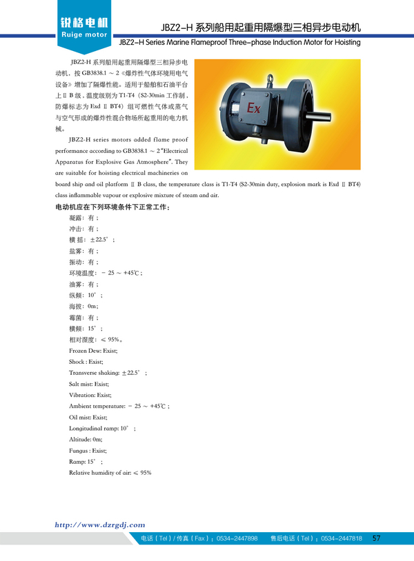JBZ2-H Series Marine Flameproof Three-phase Induction Motor for Hoisting