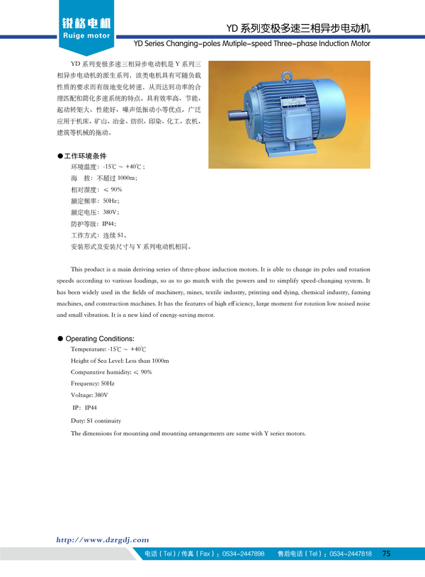 YD Series Changing-poles Mutiple-speed Three-phase lnduction Motor